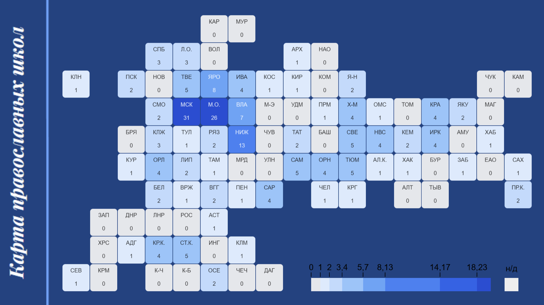 Количество православных школ(*) по регионам России