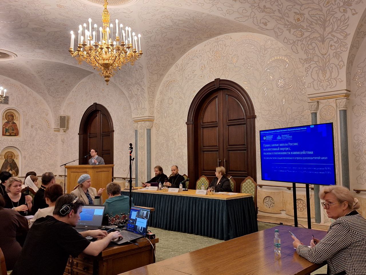 На секции с докладом «Православные школы России: коллективный портрет, вызовы и возможности взаимодействия» выступили протоиерей Николай Емельянов и Иван Павлюткин.